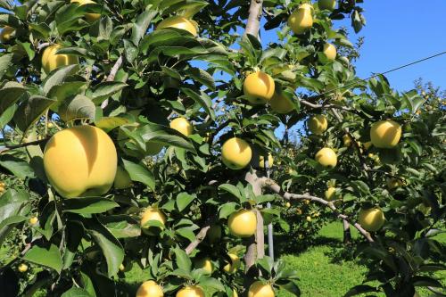 黄色りんごで、甘味の中に適度な酸味もあり果汁が多いりんごです。